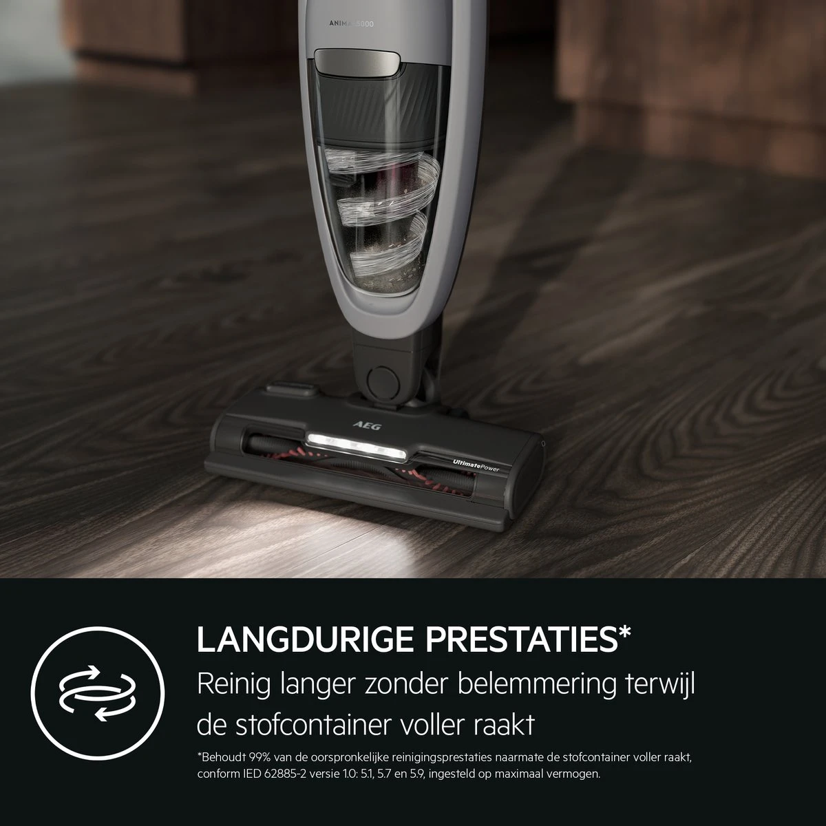 Maak ieder oppervlak gemakkelijk en doeltreffend schoon met de AEG AS52AB18BN steelstofzuiger. Met een 18V (2000mAh) systeem krijg je tot 45 minuten schoonmaken met slechts één laadbeurt. LED, BRC en PetPro turbomondstuk AZE135 zorgen voor optimale prestaties. Hierdoor is de stofzuiger ook geschikt voor dierenharen. Dankzij de gemakkelijk afneembare kruimelzuiger, kun je ook snelle schoonmaakklusjes doen. De stofzuiger is geproduceerd uit 58% gerecycled materiaal, waardoor je de natuur ook een handje helpt. Ga voor meer schoonmaken met langdurige prestaties en kies voor de AEG AS52AB18BN steelstofzuiger.