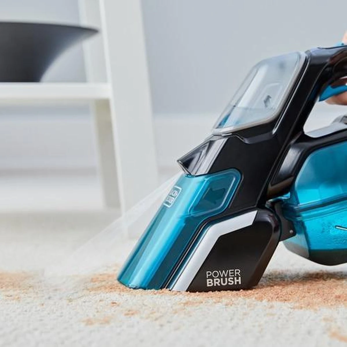 De BLACK+DECKER BHSB320JP-QW 2-in-1 Vlekkenreiniger is een complete oplossing voor het schoonmaken van tapijten en vloerkleden, gestoffeerde meubels of de auto. De 12V 2.0Ah accu biedt 12Air Watts aan zuigkracht en een looptijd van 15 minuten. Deze vlekkenreiniger heeft twee reinigingsmogelijkheden: zuigen of reinigen met sprayactivering.