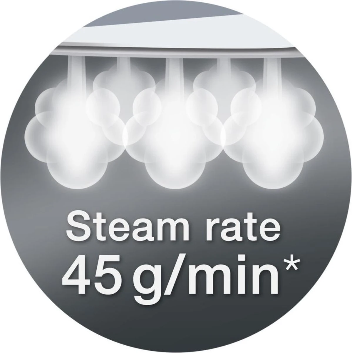 Dit strijkijzer zorgt door zijn stoomafgifte tot 45 g/min, 160 g stoomshot en 2350W vermogen voor perfecte resultaten.