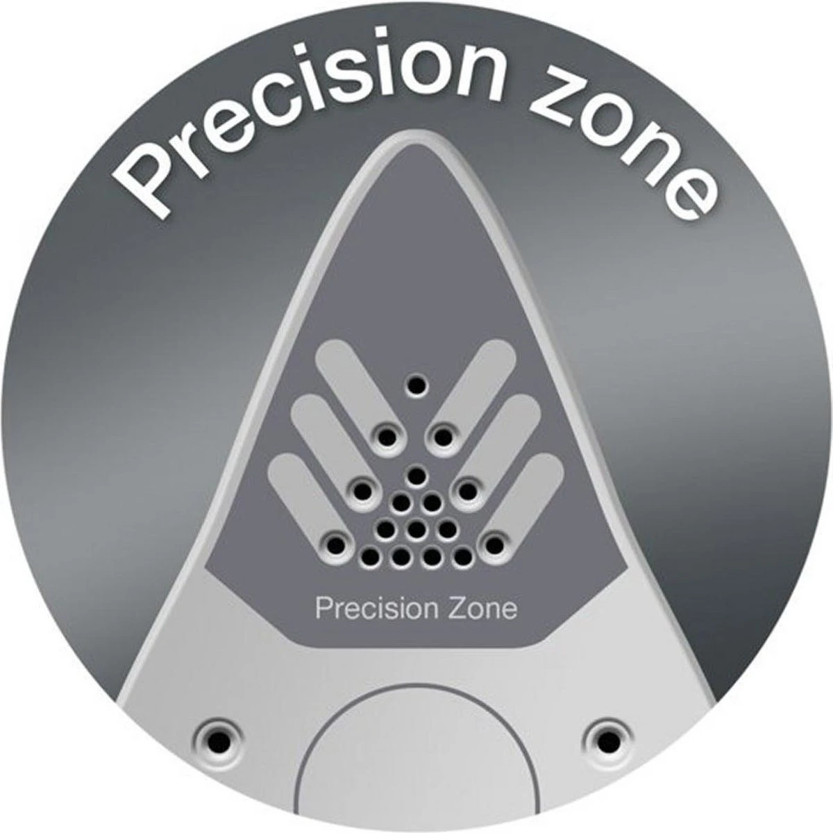 De driehoekige stoomzone in de punt van dit strijkijzer maakt het strijken van moeilijk te bereiken plekken, zoals kragen en naden, zeer eenvoudig.