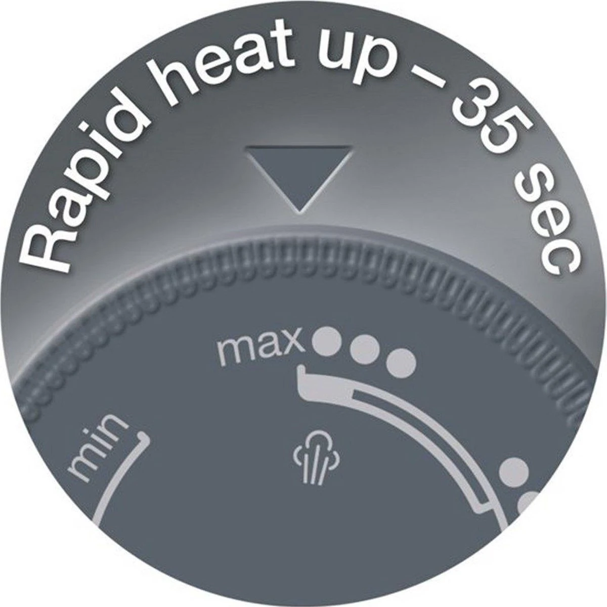 De stoomstrijkijzer is opgewarmd tot ‘max.’ in 35 sec.