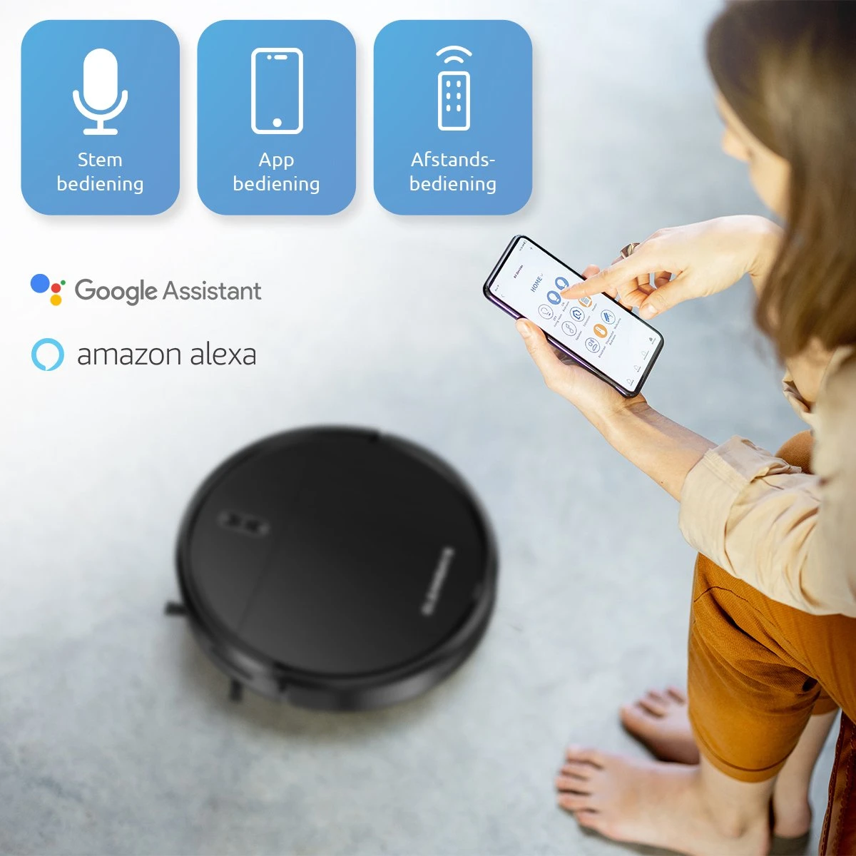 Met Amazon Alexa en Google Assistant voice control bedien jij de robotstofzuiger vanuit je luie stoel!