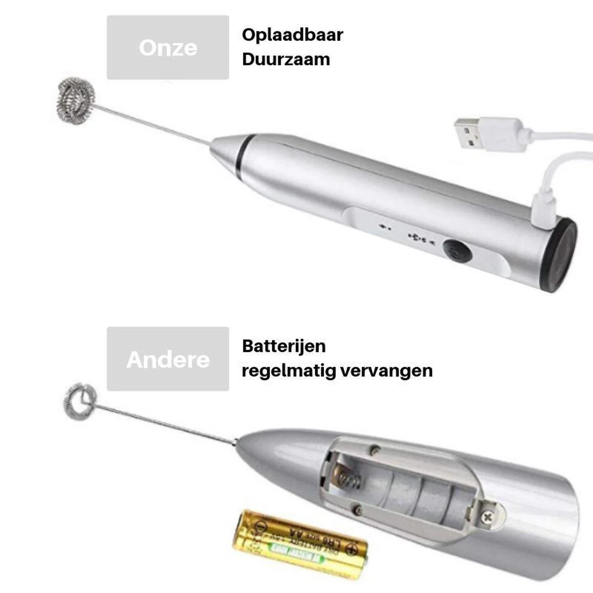 Deze melkopschuimer is oplaadbaar en daarmee beter voor het milieu dan zijn varianten die op batterijen werken. Daarnaast is het voor jou ook praktischer, omdat je de melkopschuimer snel weer kunt opladen en gereed hebt voor een volgend gebruik. Je krijgt deze opschuimer geleverd met twee verschillende opzetstukken. Één met een dubbele veer, welke uiterst geschikt is voor het opschuimen van melk. De ander met een mini garde, om een perfecte portie slagroom te kloppen.