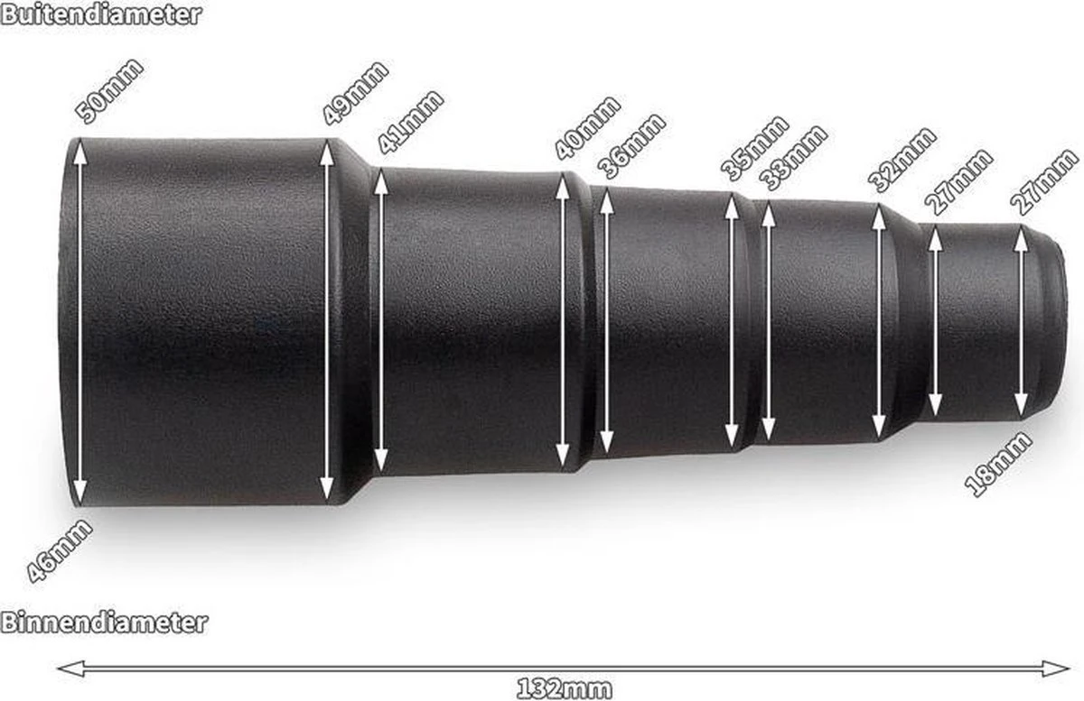 - Omdat de slangadapter van rubber is gemaakt, kan het wat ingedrukt worden. Daardoor kan de slangadapter ook in stofpoorten worden geschoven die qua diameter niet precies overeenkomen met de diameters van de slangadapter.